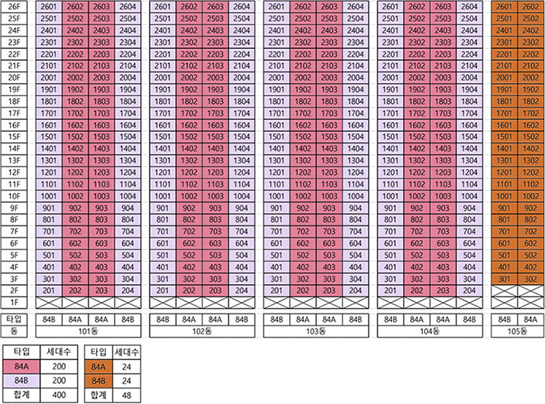 ※ 상기 동·호수배치도는 소비자의 이해를 돕기 위해 제작된 것으로 실제와 다르거나 변경될 수 있습니다.