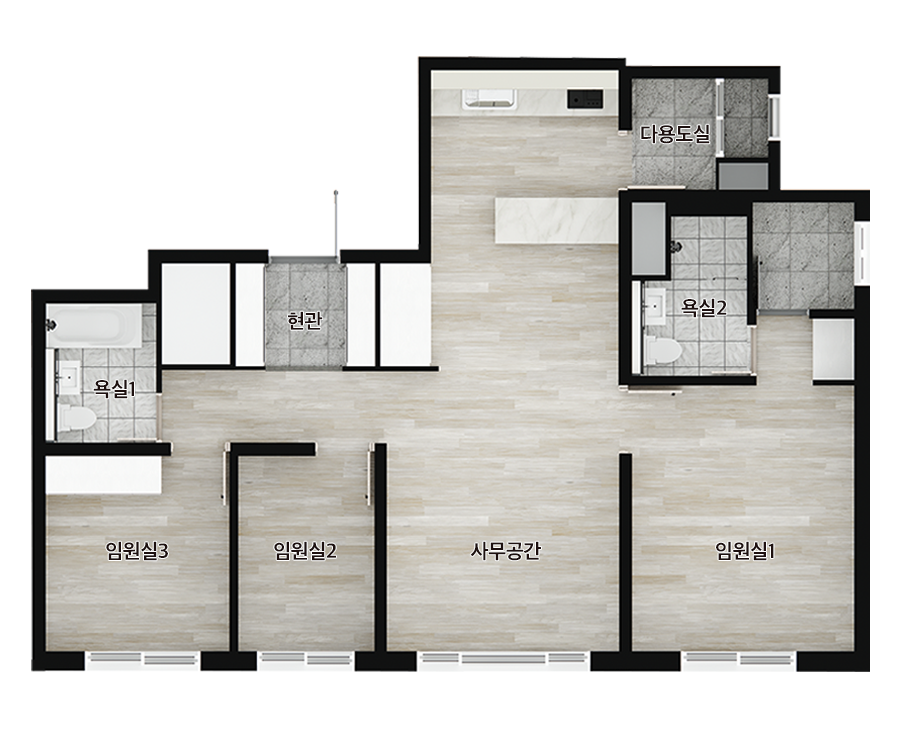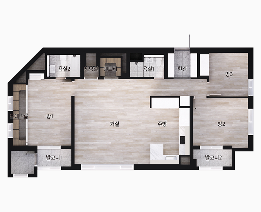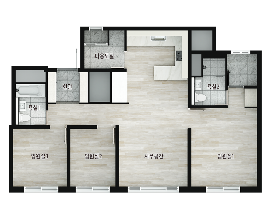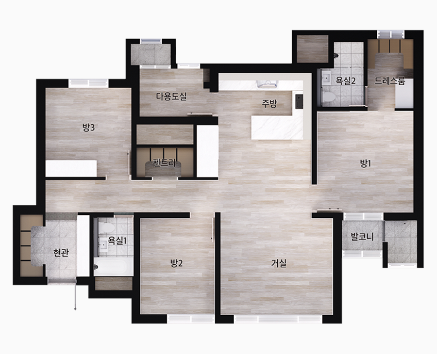 - *가구, 벽체 마감 및 바닥재 등의 재질과 색상, 일부 옵션 항목은 변경될 수 있으니 홍보관에 방문하시어 직접 확인하시기 바랍니다.